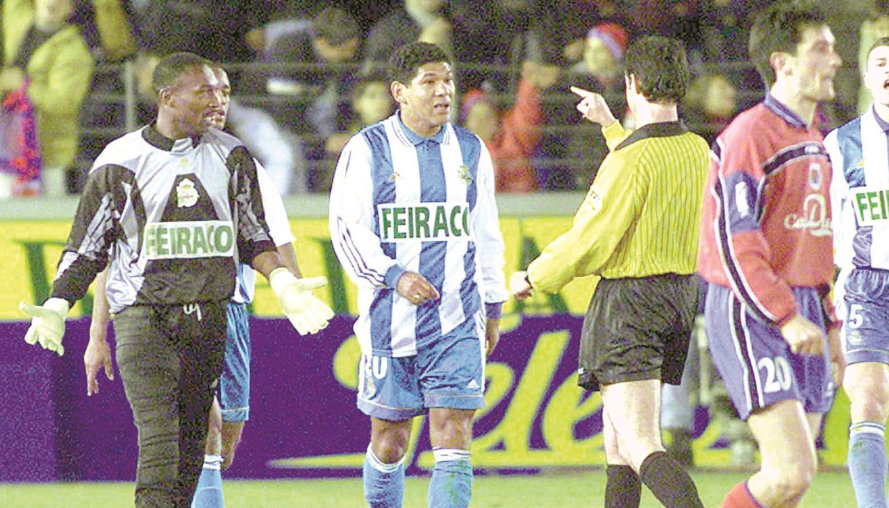 Dani Aranzubia se convirtió en el primer portero en marcar un gol que no fuese de penalti o de falta en Primera División. Lo hizo con la camiseta del Deportivo, el 20 de febrero de 2011 en campo del Almería. Pero ese honor tuvo que corresponderle con algo más de una década de antelación a otro portero deportivista. Jacques Songo’o vio cómo el colegiado le anulaba, tal día como hoy hace un cuarto de siglo, un tanto que debió haber subido al marcador.