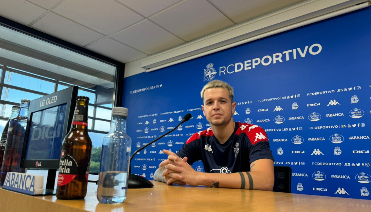 Rubén López, centrocampista del Deportivo, compareció en rueda de prensa para analizar el comienzo de la pretemporada 2024-24, valorar su rol y sus posibilidades en el primer equipo y su evolución en la pasada campaña, donde consiguió hacerse un hueco en la primera plantilla desde el Fabril.
