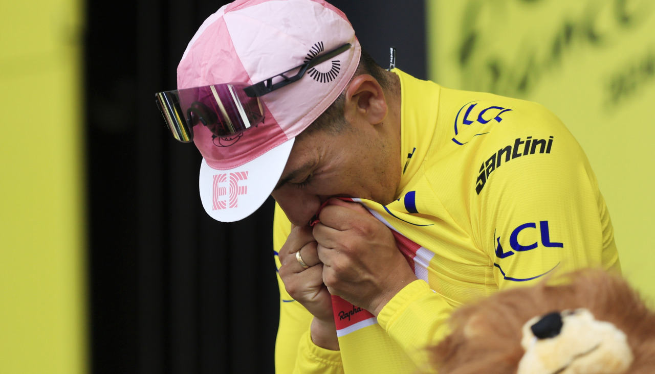 El primer ecuatoriano de amarillo en el Tour volcó su emoción en meta.