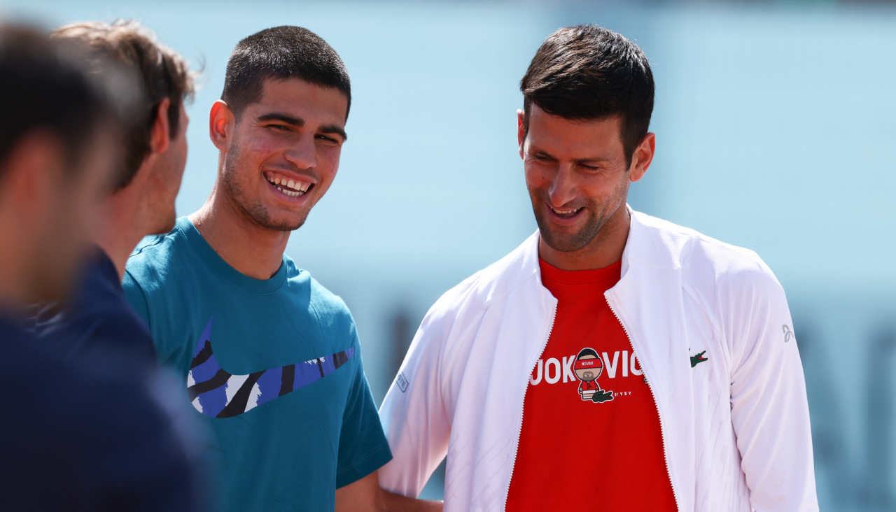 La presencia de Carlos Alcaraz en la pista siete de entrenamiento de la Caja Mágica desató la locura entre la afición española, que acudió en masa a ver al jóven jugador murciano, que se ejercitó durante media hora con el serbio Novak Djokovic.