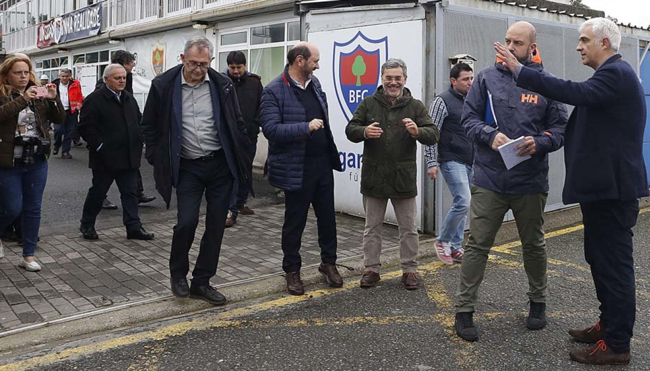 El alcalde de Carballo, Evencio Ferrero; el presidente del Bergantiños FC, Luciano Calvo Pumpido; representantes de la empresa que ejecuta la obra, Policía Local y representantes de la Real Federación Gallega acompañaron a los técnicos de la Federación Española.