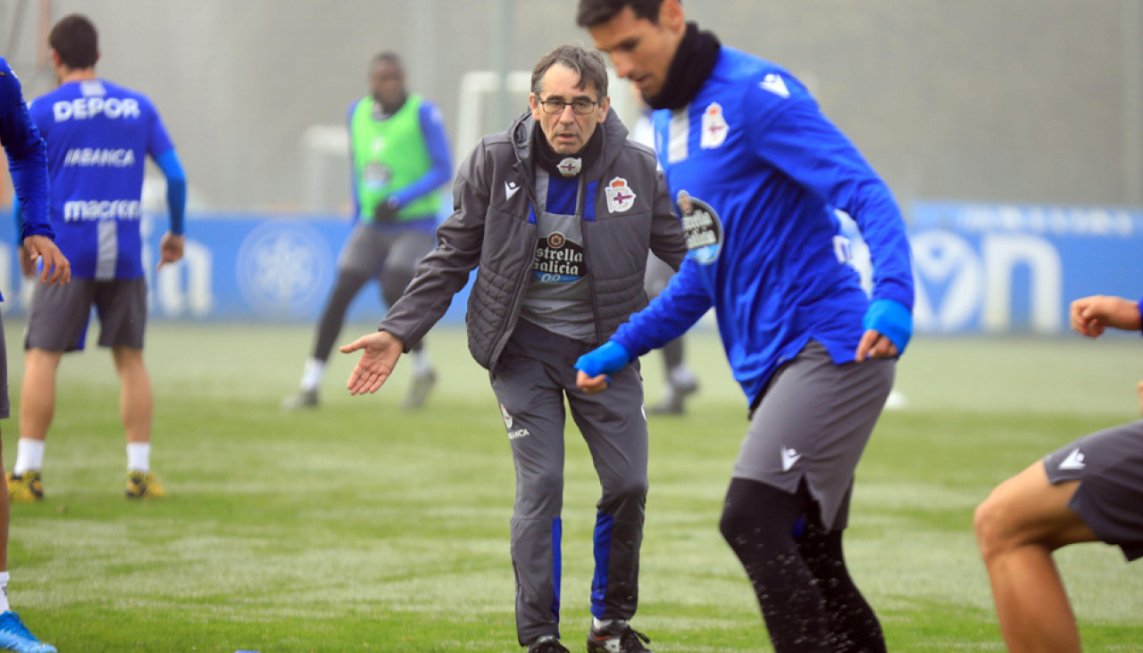 En el centro del campo es donde el estratega deportivista probó alguna variante nueva, bien de cara al once inicial o como posible modificación durante el partido, ya que Vicente actuó en el doble pivote junto a Gaku, con Mollejo y Çolak escorados a las bandas.