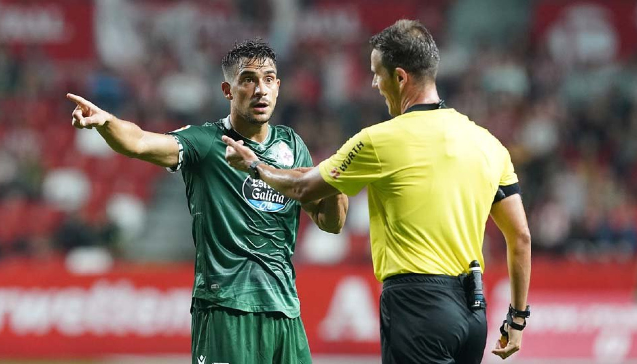 Los centrales del Deportivo también se cargaron de tarjetas en un partido en que el árbitro, Pulido Santana, había sido más permisivo con los locales. Eso sí, el colegiado canario asustó a los rojiblancos al expulsar por error a Damián Pérez. Le mostró la roja directa cuando quería sacarle la amarilla.