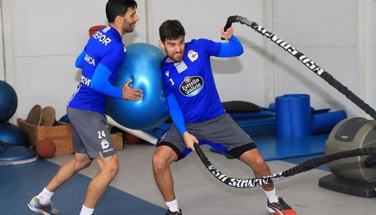 La plantilla blanquiazul se sometió ayer a un entrenamiento indoor en el gimnasio ubicado en el campo 7 de Abegondo para realizar un circuito físico dirigido por el preparador físico Marcos Marcén.