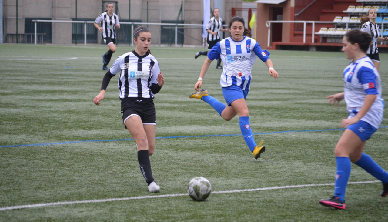 El cuadro blanquinegro salió con la formación habitual, con tres centrales –Miga, Ana y Tati– con Charín y Paloma en las bandas, con Iria, Gara y Lau por dentro; y con María y Ceti como futbolistas más avanzadas.