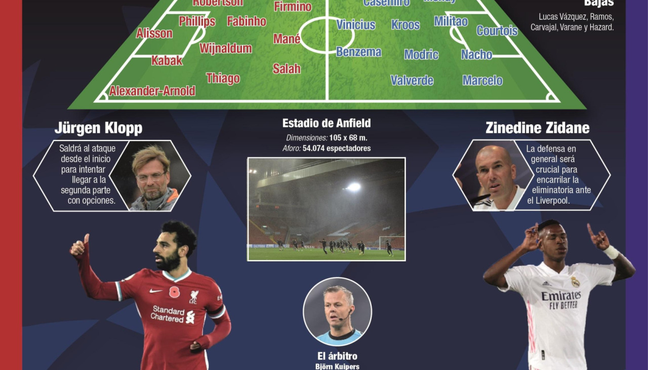 La ilusión madridista de dar un paso firme hacia la decimocuarta Copa de Europa, con un rival del perfil del Chelsea en el horizonte de semifinales y una final soñada, pasa por el mítico Anfield. Con un factor a favor, la ausencia de un público que empuja en volandas a la épica al Liverpool, pero varios en contra de Zidane.